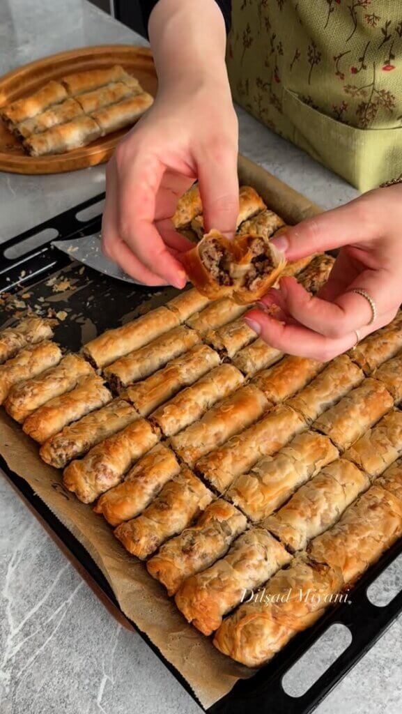Bu börekle herkes şaşıracak! Hem çıtır çıtır, hem de yapımı sandığınızdan çok daha kolay. İncecik açılan hamurun arasına bol kıymalı harç ekleniyor, üzerine tereyağı gezdiriliyor ve fırından çıkan mis gibi börek sofranıza şenlik katıyor.