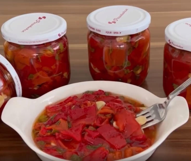 4. Kabuklarını soyalım ve soguduktan sonra doğrayalım . biberleri doğradıktan sonra üzerine bir su bardağı sıvı yağ bir su bardağı elma sirkesini ilave Edip karıştıralım ardından yarım demet maydanoz,Kaya tuzu ve sarımsağı ilave ederek homojen bir şekilde karıştıralım.