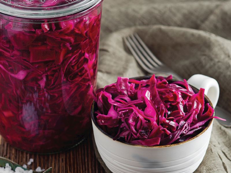 - Yumuşayan ve rengi açılan lahanayı bir kavanoza sıkıştırarak doldurun. Üzerine sirke, su, limon tuzu ve kalan kaya tuzunu ilave edip kapağını sıkıca kapatın.