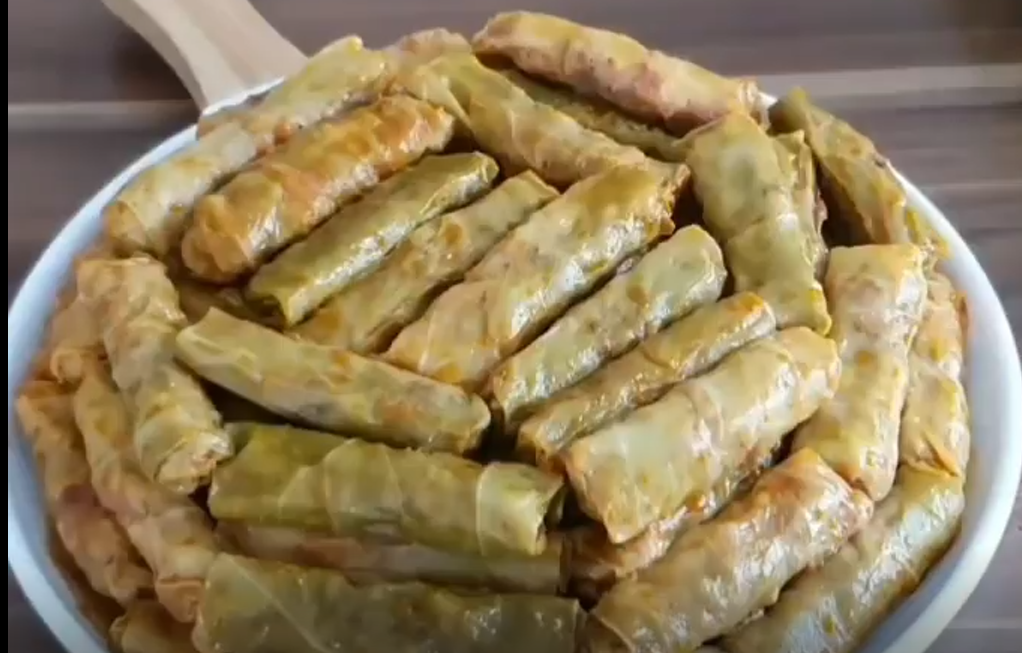 4. Lahana yapraklarına İç harcini ilave edip rulo şeklinde saralım.