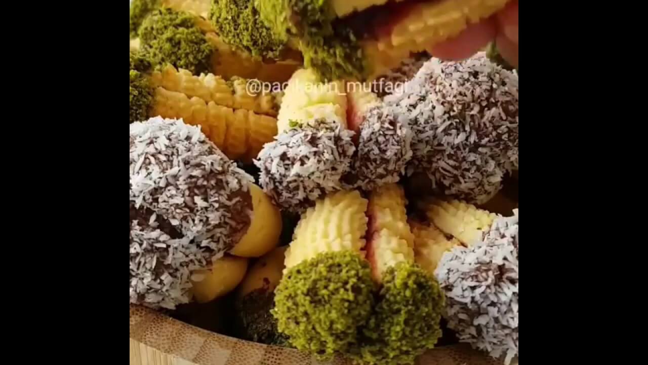 Tereyağı ve pudra şekerini bir kaç dk çırpıp yumurta sarılarını ekleyin ve çırpın. Diğer malzemeleri de ekleyip çırpın. Sıkma torbasına hamuru alın. Tırtıklı duy takın ya da elinizle yuvarlayıp çatalla bastırın. Yağlı kağıt serili tepsiye dizin. 180 derecelik fırında 10 dk pişirin. Soğuyunca arasına reçel sürüp çikolataya batırın. Fıstık hindistancevizine bulayın afiyet olsun ☺