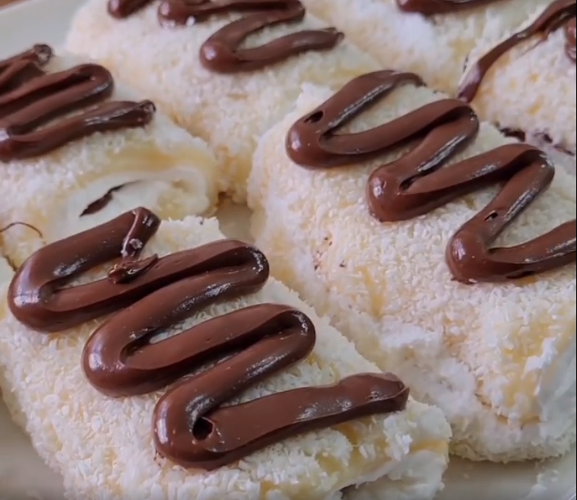 Süt şeker ve unu tencereye alalım iyice çırpalım daha sonra ocağı alalım sürekli karıştırarak koyulaşıncaya kadar pişirelim fokurdamaya başladığında 3,4 dakika daha pişirelim ve ocaktan alıp tereyağını ve vanilini ekleyip karıştıralım hindistan cevizini 40cm’lik tepsiye yayalım muhallebiyi üzerine aktaralım düzgünce yayalım ve 10 dakika dinlendirelim daha sonra buzdolabına kaldıralım tepsinin altı buz gibi olunca alalım 1 paket krem şantiyi 1subardağı süt ile çırpalım üzerine aktaralım dilimleyip üzerine 4,5 yemek kaşığı kahvaltı çikolatası aktarıp rulo yapalım 2,3 gün kalsa bile asla kırılma çatlama olmuyor hatta kağıt gibi tekrar açıp sarılabiliyor deneyecek olanlara şimdiden afiyet olsun.