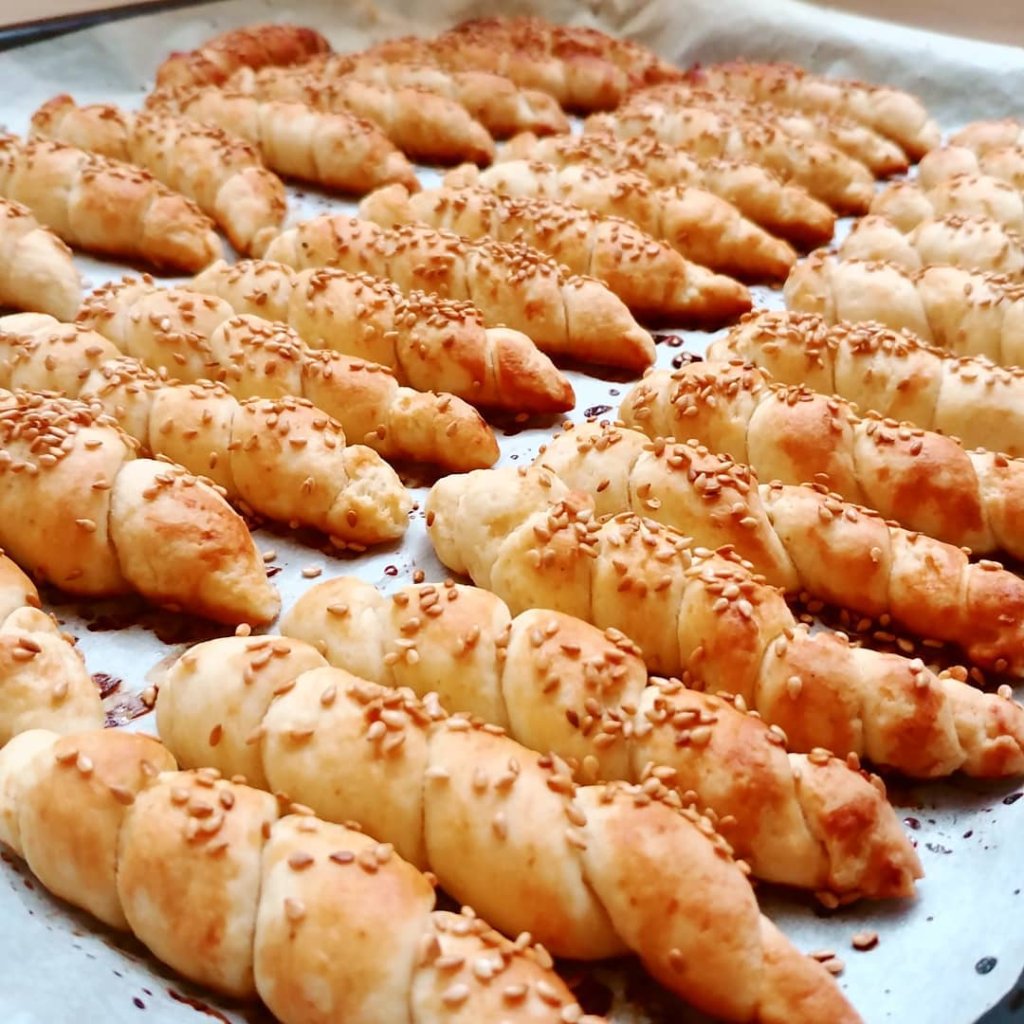 Oda ısısına gelmiş olan margarin ya da tereyağı kabımıza alalım diğer malzemeleri sırasıyla üzerine ekleyelim yoğuralım yumuşacık ele yapışmayan bir hamur elde edelim videoda gösterdiğim gibi Ceviz büyüklüğünde hamurlar bezeleri ayıralım uzun rulo şeklinde yapalım ve uzun kürdana Video da gösterdim gibi doluyalım ve şeklini verelim isterseniz başka şekillerde verebilirsiniz üzerine bir tatlı kaşığı pekmez 3 yemek kaşığı suyu karıştırıp fırça yardımıyla sürelim onun üzerine de Susam ekleyelim ve fırına verelim 170 derecelik fırında altı üstü kızarana kadar pişirelim denecek Herkese afiyet olsun